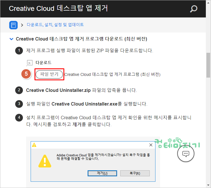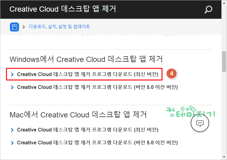 ▼ Creative Cloud 테스크탑 앱 제거화면에서 4. Creative Cloud 테스크탑 앱 제거프로그램 다운로드 클릭합니다.