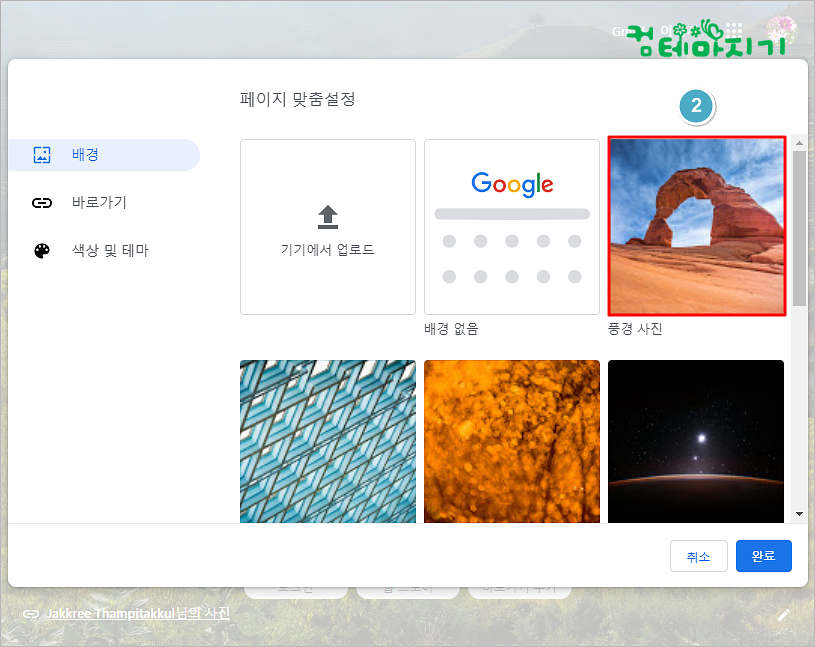 ▼ 페이지 맞춤설정 화면에서 내가 원하는 이미지를 선택합니다. 저는 여기서 2. 풍경사진을 선택하였습니다.