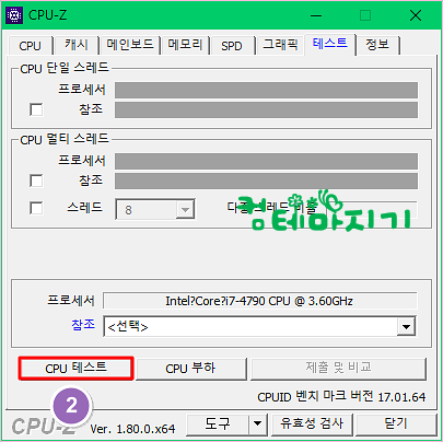▼ 테스트탭 화면에서 2. CPU 테스트를 클릭합니다.
