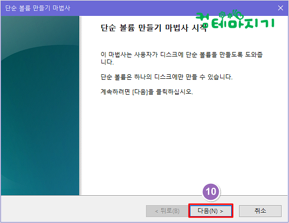 ▼ 단순 볼륨 만들기 마법사 화면에서 10. 다음을 클릭합니다.