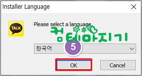 ▼ 설치언어화면에서 한국어를 확인하고 5. OK를 클릭합니다.