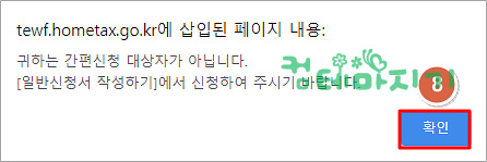 간편신청 대상자가 아니면, 8. 확인을 클릭합니다.