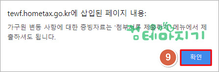 ▼ 가구원 변동 사항이 있으면, '첨부서류 제출하기'로 해당 서류를 이미지 파일로 제출하며, 해당사항이 없으면 9. 확인을 클릭합니다.