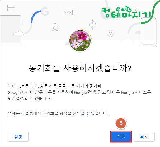▼ 동기화를 사용하시겠습니까? 에서 6. 사용을 클릭합니다.