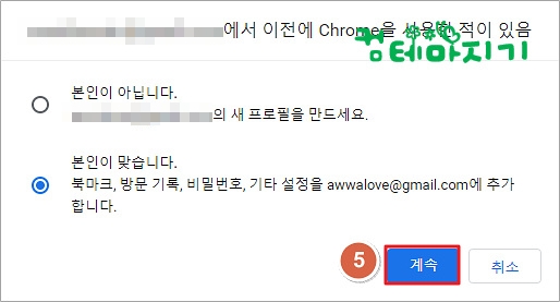 ▼ 본인 확인 화면에서 본인이 맞습니다.를 체크하고 5. 계속을 클릭합니다.