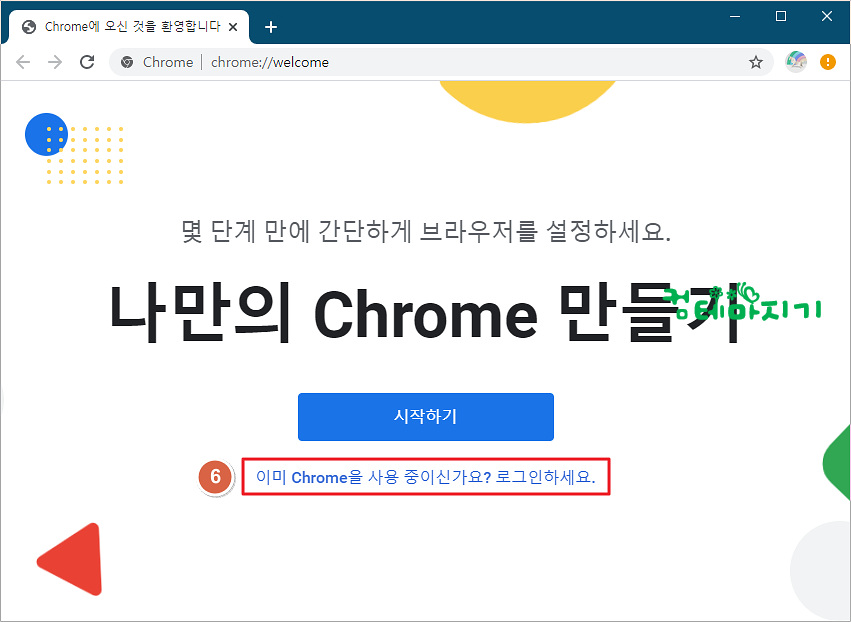 ▼ 등록한 구글계정이 있으면, 6. 이미 크롬을 사용중이신가요? 로그인하세요.를 클릭합니다.