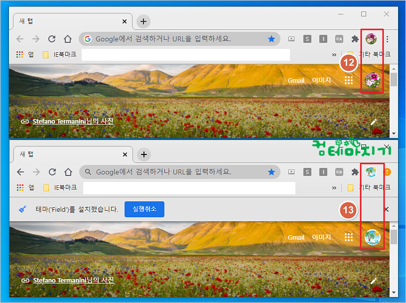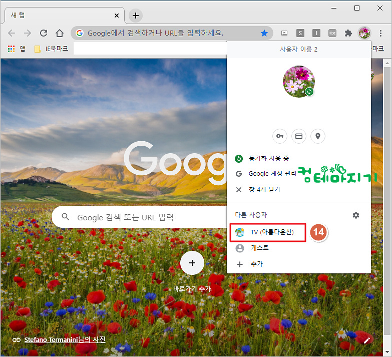 ▼ 우측상단의 구글크롬 사용자아이콘을 클릭하여, 앞의 단계에서 만들어진 14. TV(아름다운산)을 확인할 수 있습니다.