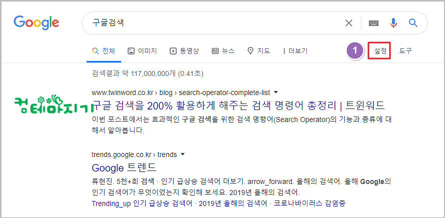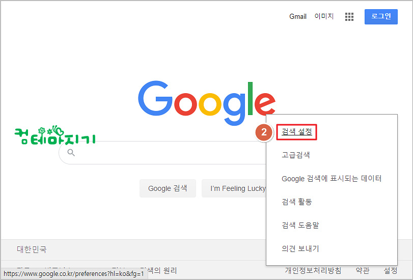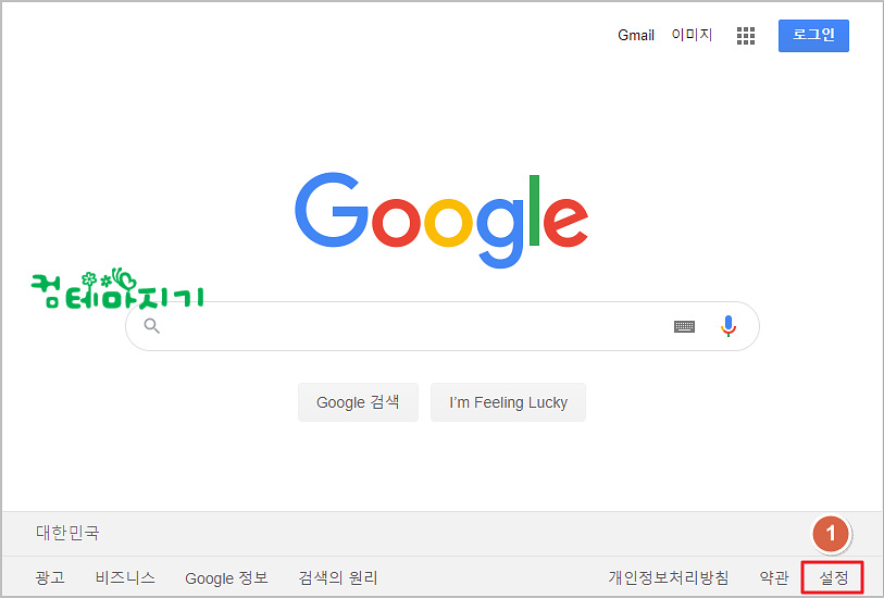 ▼ 구글검색 화면에서 우측 하단의 1. 설정을 클릭합니다.