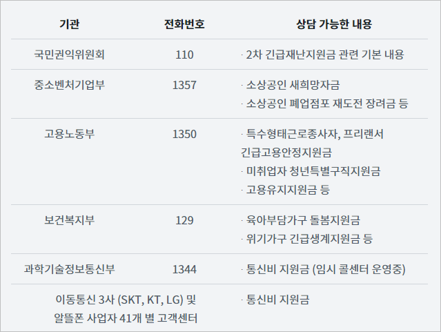 더욱 자세한 내용은 각 기관별 고객센터를 통해 확인하시기 바랍니다.