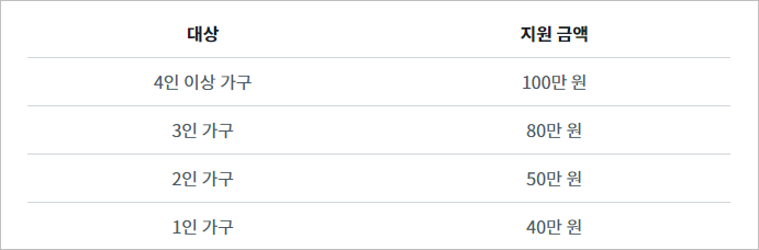 지원금액 : 최대 100만원까지 차등 지급, 타 지원금과 중복으로 지원받을 수 없습니다.