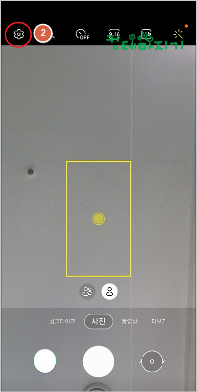 ▼ 카메라 시작 화면에서 2. 설정 아이콘을 터치합니다.