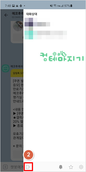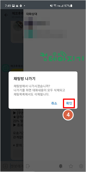 ▼ 채팅방 나가기 화면에서 [3. 나가기] 터치합니다.