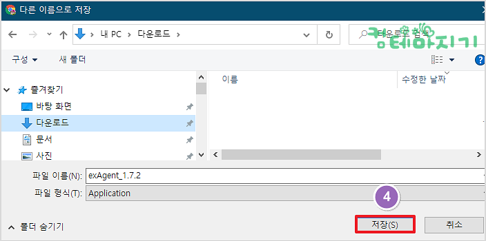 ▼ 다운로드 폴더 선택, Agent프로그램을 저장하기 위해 [4. 저장(S)]을 클릭한 다음, 설치합니다.