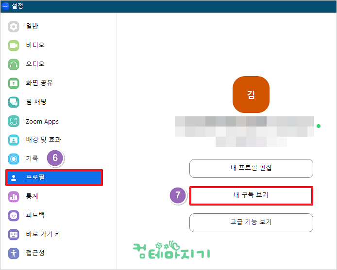 ▼ 설정 화면에서 [6. 프로필]을 선택, [7. 내 구독 보기]를 클릭합니다.