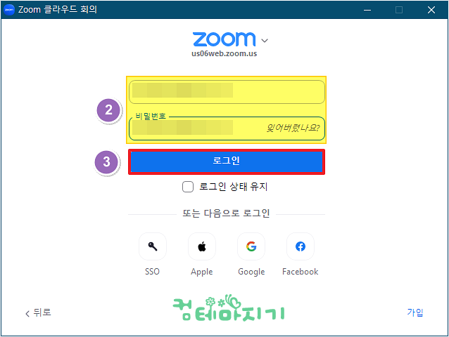 ▼ 먼저, 줌(zoom)을 열어 [1. 로그인]으로 들어갑니다.