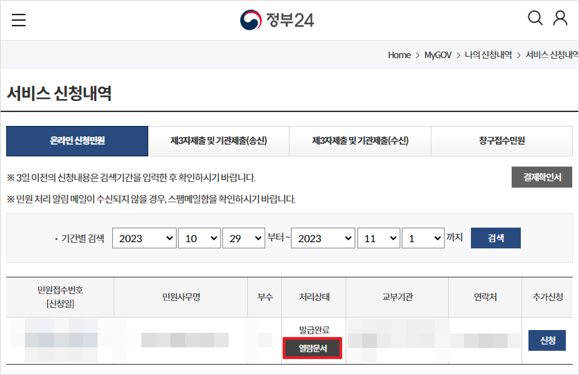 ▼ 서비스 신청내역 화면에서 [열람문서]를 클릭하여 인쇄하거나 PDF파일로 저장하여 사용합니다. 이 시간에는 주거급여수급자 증명서 신청이 간단하게 새롭게 변경된 국민기초생활수급자 증명서 발급신청에 대해서 알아보았습니다.