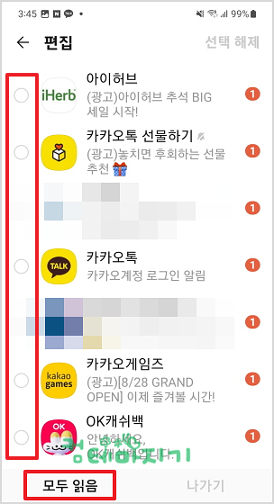 일일이 읽음처리하기도 여간 번거로운 일이 아닙니다. 여러개의 톡알림을 읽음으로 처리하는 방법을 알아봅니다.