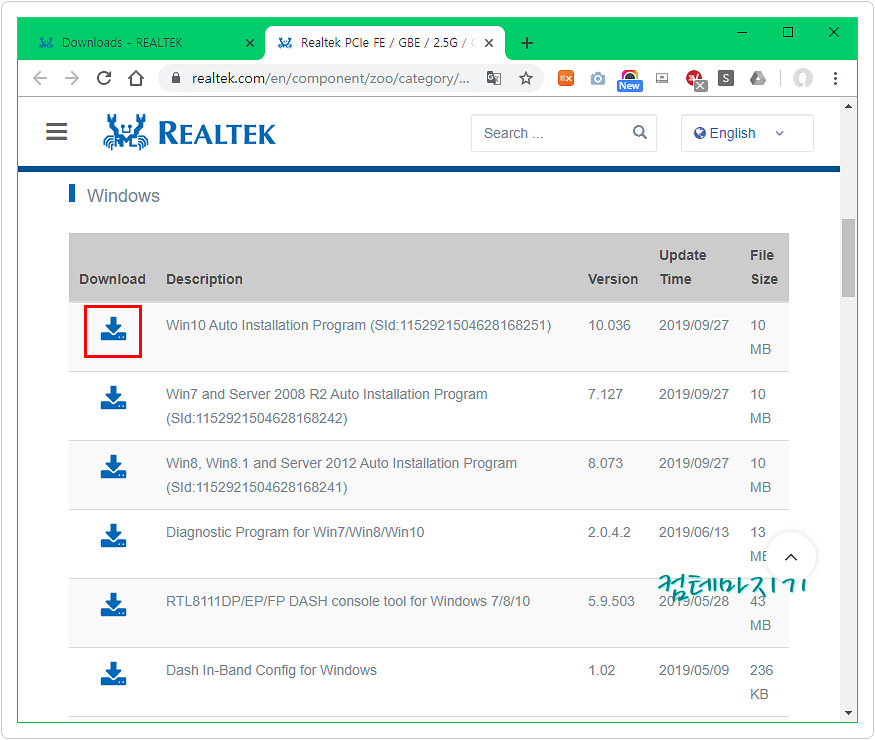 리얼텍 사이트 바로가기 : https://www.realtek.com/en/