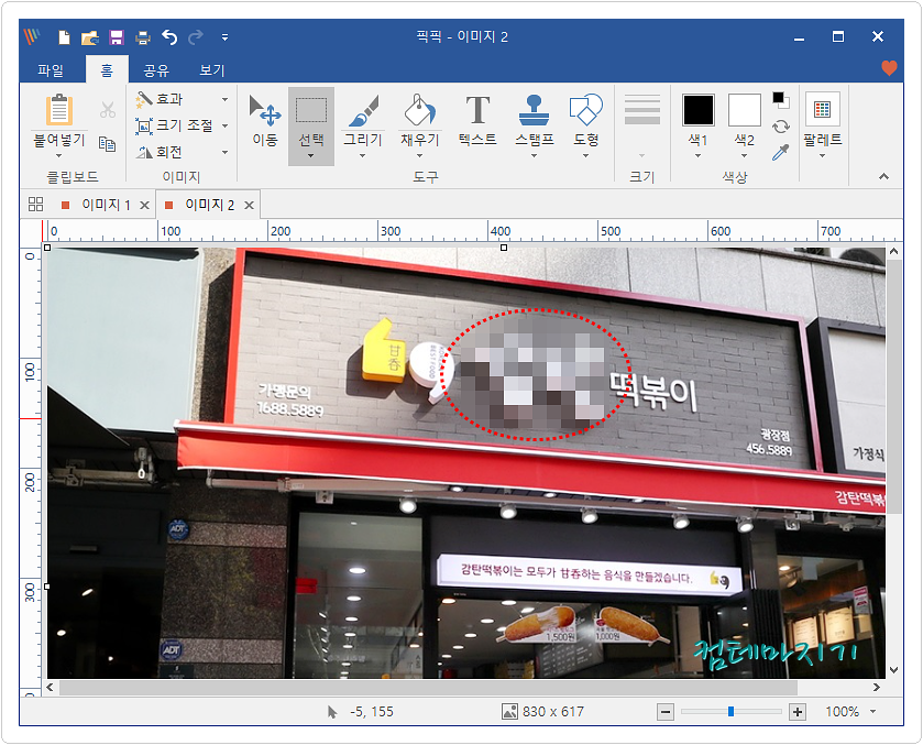 픽픽이 여러가지 기능중에서 모자이크를 사용해 보겠습니다. 먼저, 아래 이미지 중에서 모자이크 처리하고자 하는 부분을 선택툴로 선택합니다.